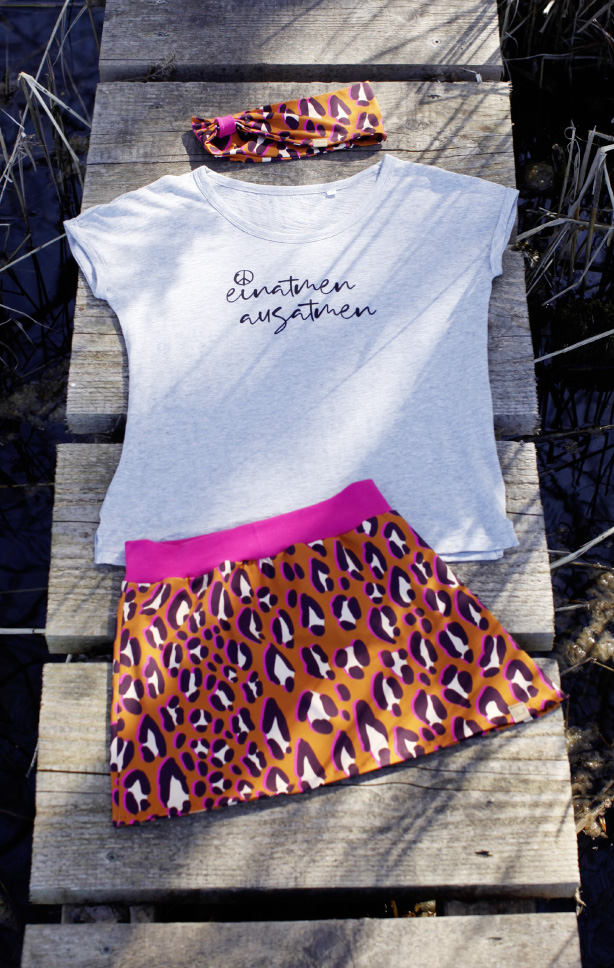 Wir verwenden ausschließlich Bio-Jerseystoffe der Firma Albstoffe, die allesamt GOTS zertifiziert sind. Die Firma Albstoffe färbt und verarbeitet seine Garne ausschließlich in Deutschland. Die Stoffe bestehen aus 95 % Baumwolle und 5 % Elasthan. Unsere Kleiderlabel bestehen aus veganem Leder und werden ebenfalls in Deutschland produziert.